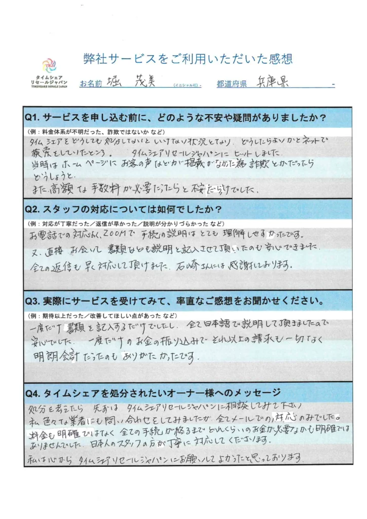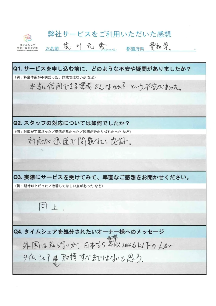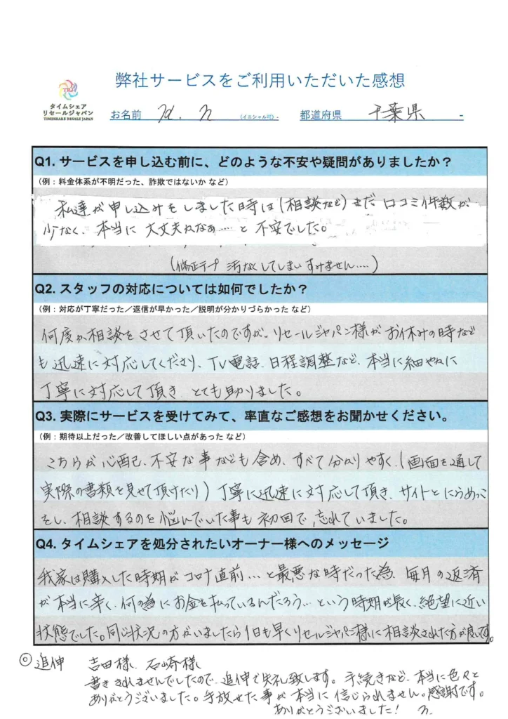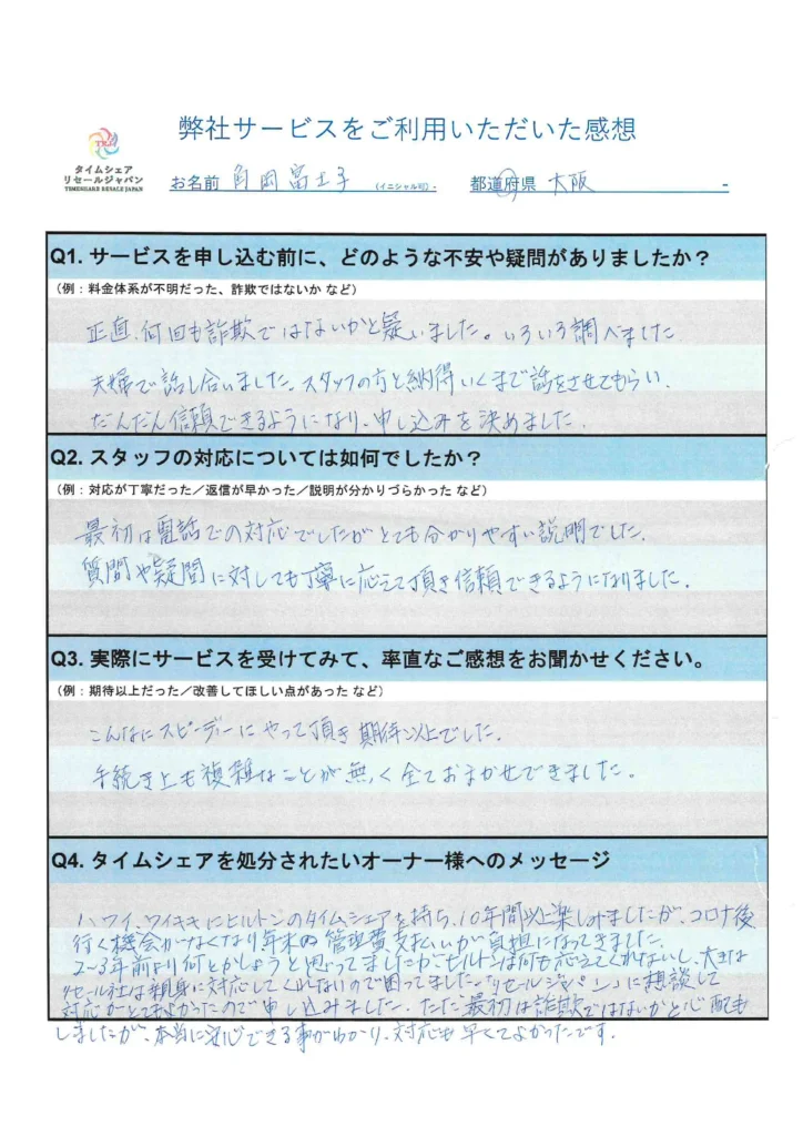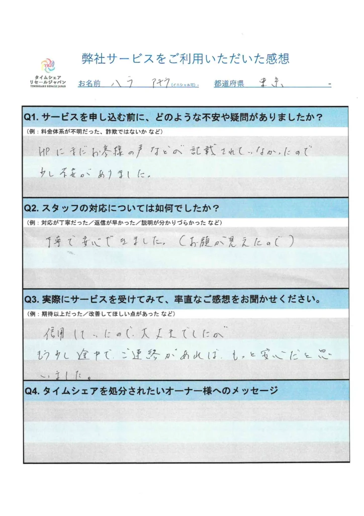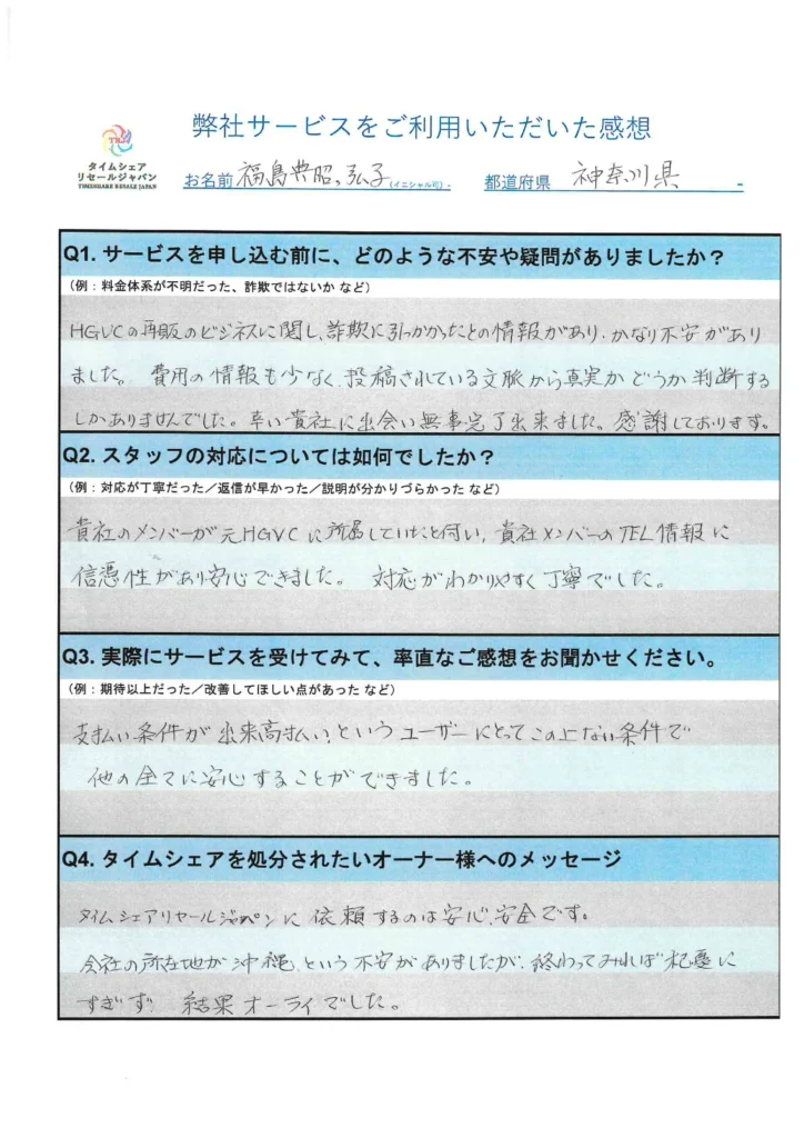 当時の皆様には、タイムシェアリセールジャパンは大丈夫だから、という紹介者様の言葉だけを信じてご依頼をいただいていたものと思います。